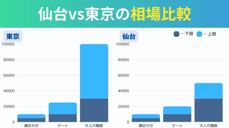 仙台では、月5〜15万円ほどの支出で安定した関係を築く男性が多い傾向。「継続交際」や「食事中心」が主流で、東京よりコスパ良好です。